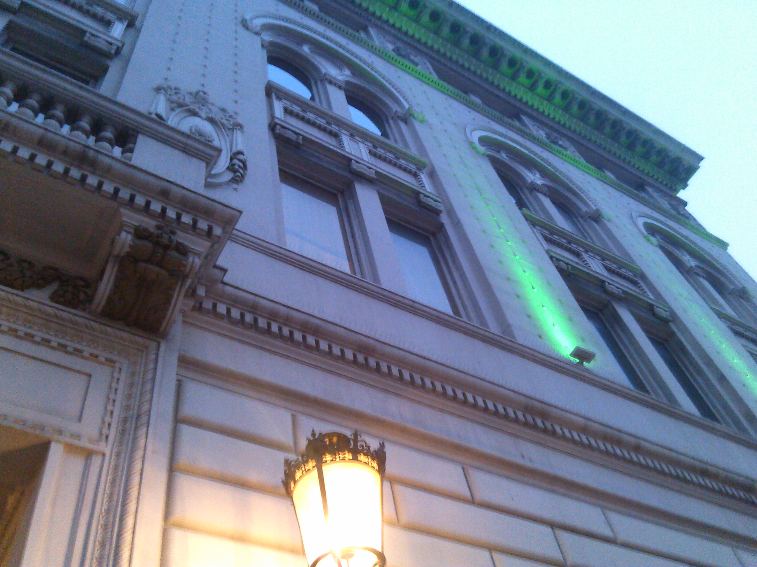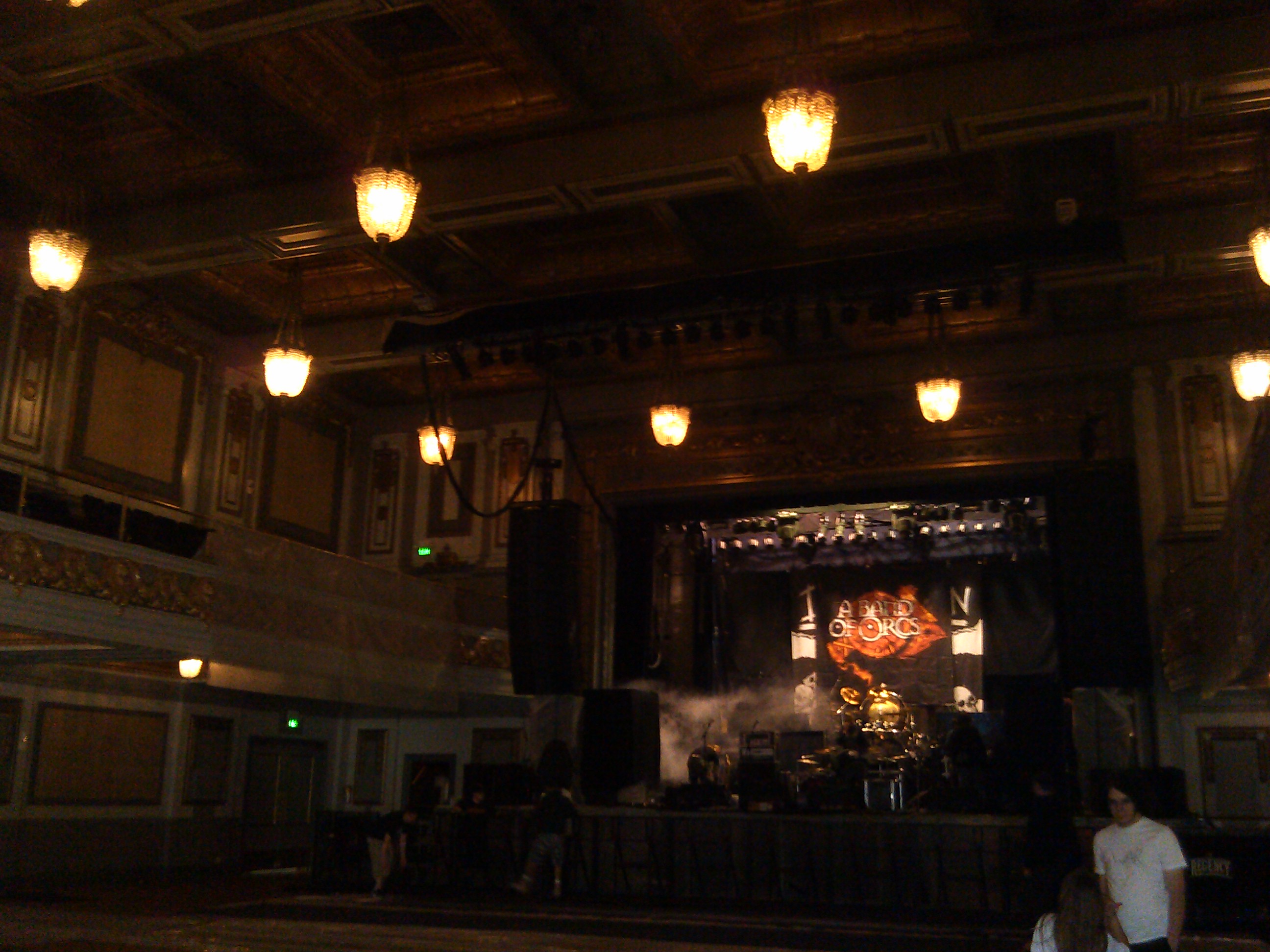 The tour was hitting the Regency Ballroom, an old dancehall built in 1909 and is a “fine example of Scottish Rite architecture” according to their website. The massive stage, hardwood floors and 22, turn-of-the-century teardrop chandeliers are clearly too nice for modern times, and one can imagine the Regency being a really swinging jazz hall at one time. But tonight, it was home for metal, blood, Orcs, and space aliens. Just another night in SF.