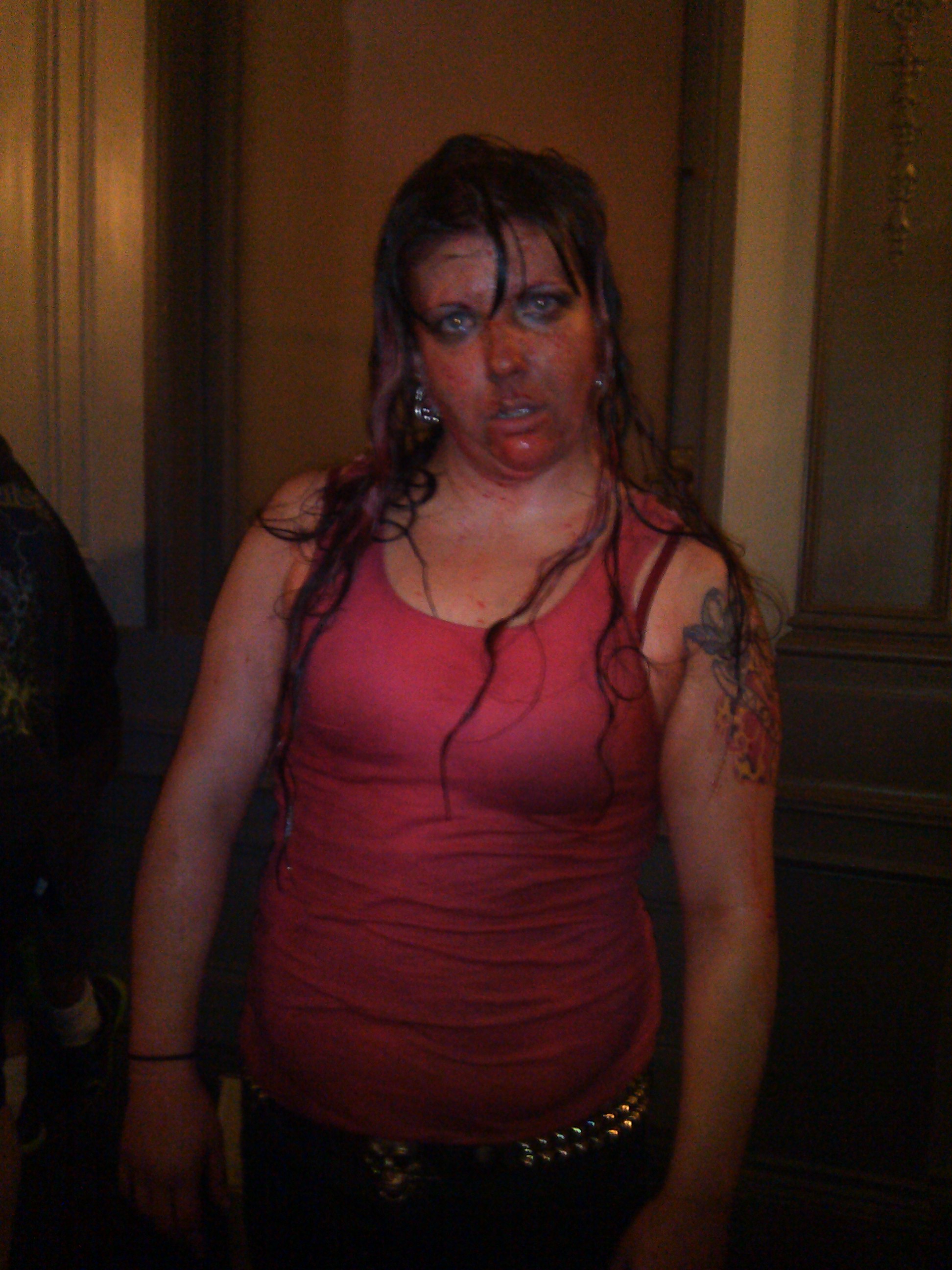 The crowd was clearly getting off on the gallons of red blood and blue jizmoglobin as person after person emerged from the mosh pit, covered in the liquids like a bukakke from hell.