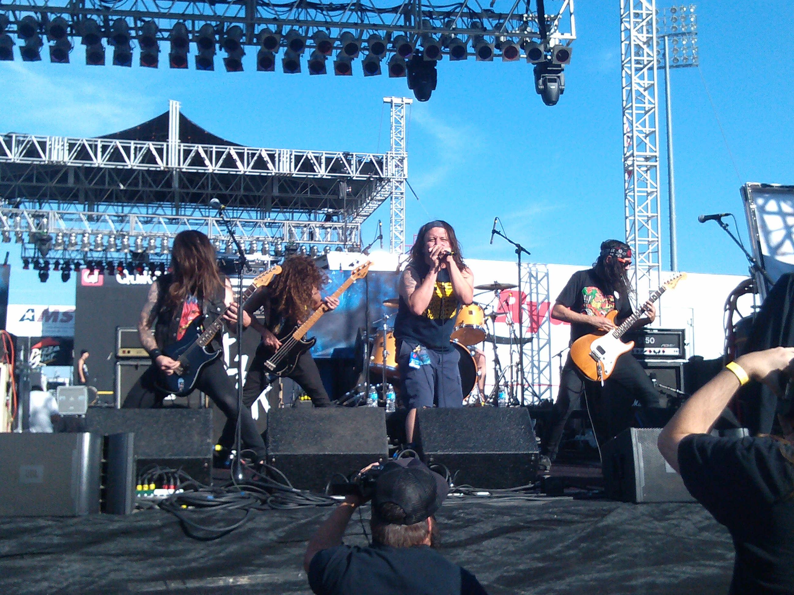 Luckily, there was a tire garage only a few miles away, so we stopped there, only to be delayed another 90 minutes. Arizona is a terrible state, and it’s not just my bad luck. Iron Reagan also had a tire blowout and Gwar’s bus broke down for the second time.