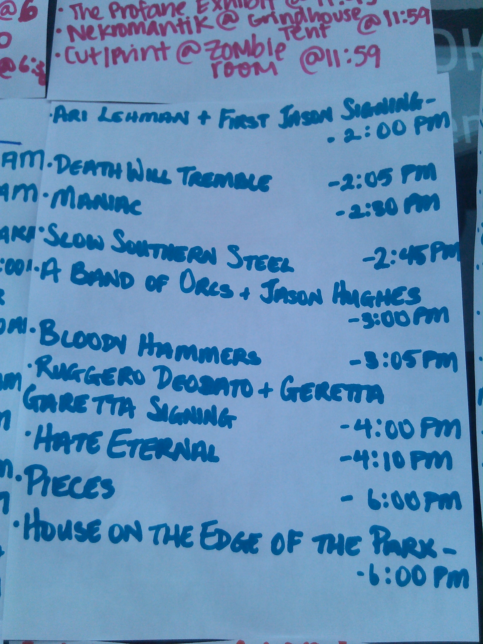 As the credits rolled past the screen, Raven and I set up our booths next to a band called The Bloody Hammers, and I checked out First Jason’s goods. Every piece of merchandise was Friday The 13th themed, from Jason-style hockey mask earrings to movie stills, posters, t-shirts and even mini, plastic machetes. Ari even played a keytar shaped like a machete, singing numbers like “Jason is Watching” and “Crystal Lake.” It was a whole new level of campy fun, excuse the pun.