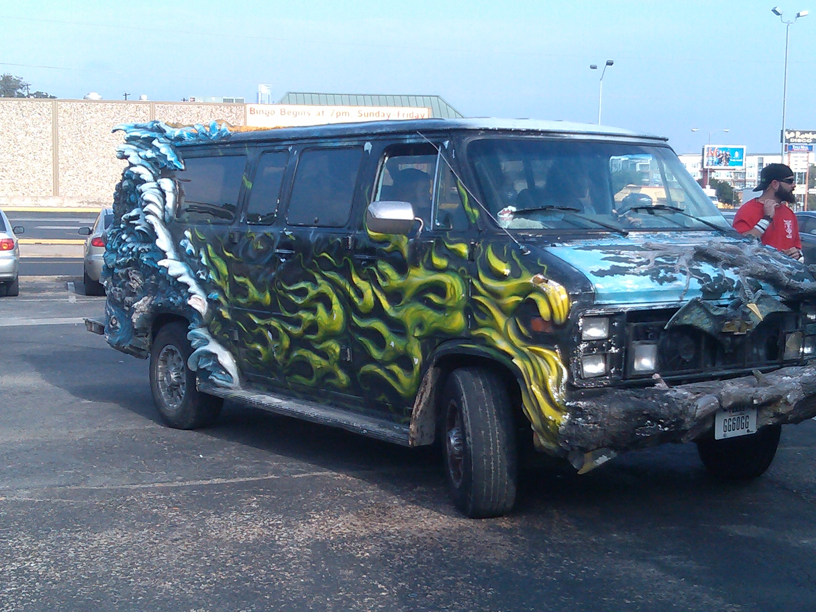 I wearily opened my eyes the morning after the Housecore Horror Festival, cursed the blinding, morning light and thanked the heavens because my head felt fine. I noticed only Jesse and Kyle were in the RV, so I climbed outside to see what was going on. We were parked in a hotel lot, because the HHF had flipped the bill to put the musicians up properly. In a few minutes Gronk! walked out the building’s side door and told me the shower was free and we could do laundry. I grabbed a fresh pair of clothes and ran to the room.