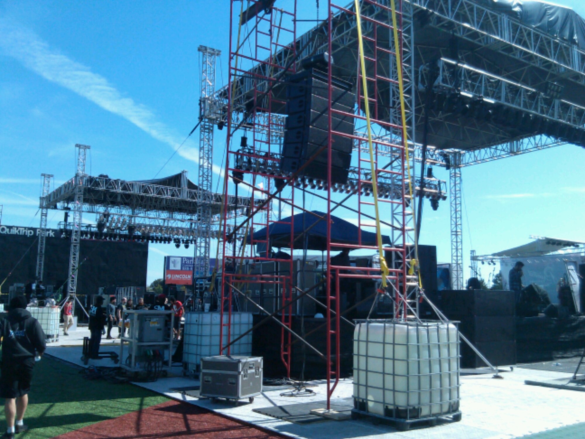 “Oh, by the way,” Oog said as we were unloading a case, “I found a screw in the trailer tire, but I’m not too worried about it. The tire seems to be holding and I’ve done tours with 2 nails in those things. We just need to keep an eye on it.”