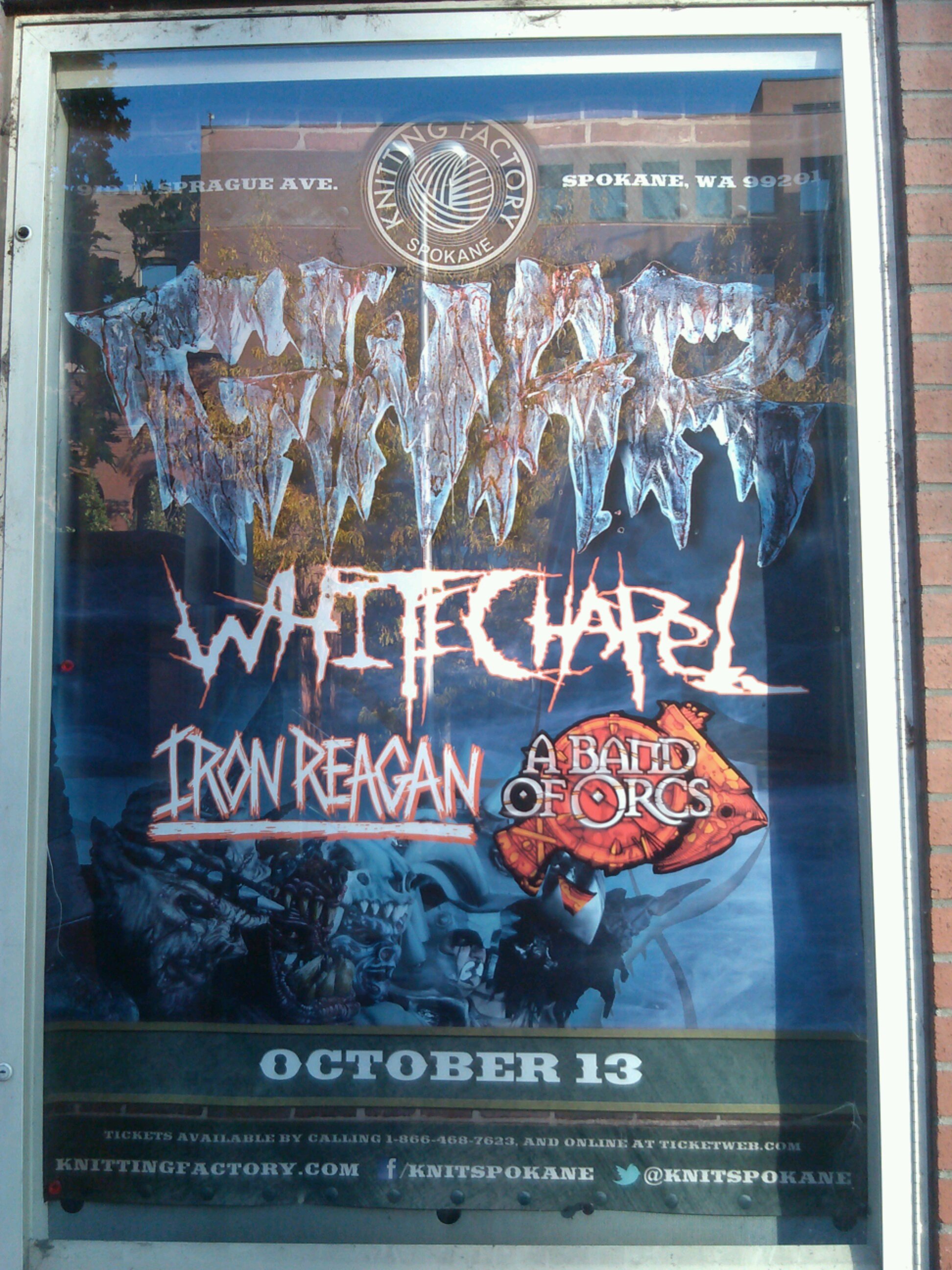 Unfortunately, since the Senator wasn’t initially meant for music, the merch booths were set up along the concession counter, and we were cut off from the bands. Tessara hung out with me during Iron Reagan and Whitechapel, and we talked with the house’s concession girl, Maria, about Chico, the theater and favorite shows she’s seen there.